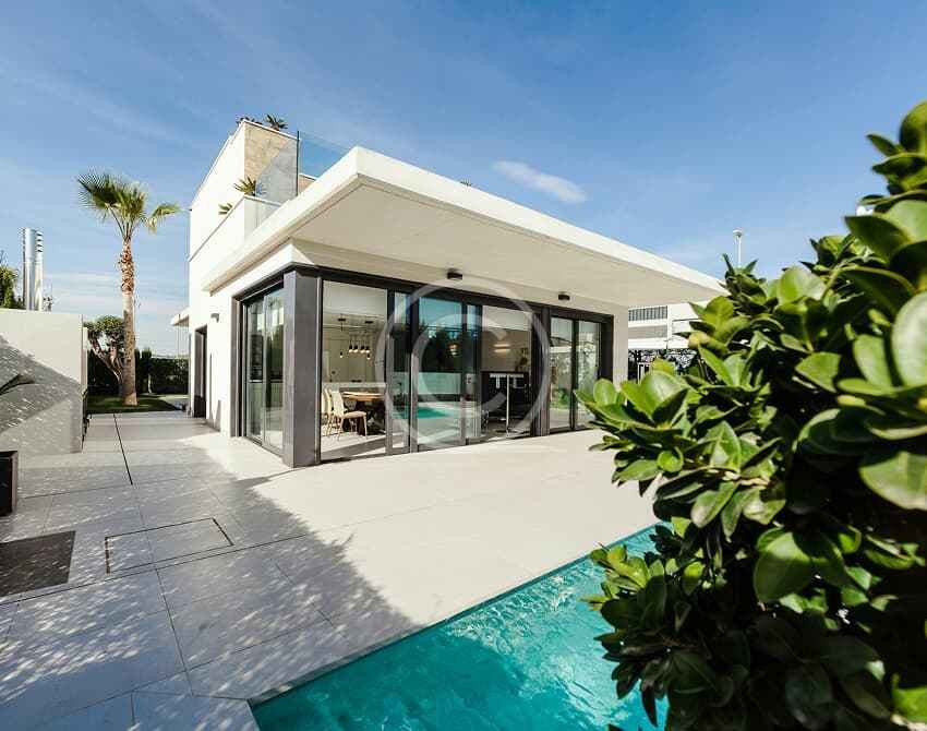This villa opens to the sea, merging white walls, open rooms, and a pool for outdoor living joy.